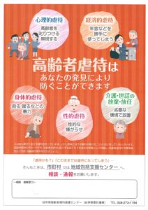 県では、高齢者を虐待という権利侵害から守り、安心した生活を送ることができるよう、 市町村等からの高齢者虐待に関する相談等に対応する「岐阜県高齢者権利擁護センター」 を新たに開設しました。 開所日 令和元年6月10日(月) […]